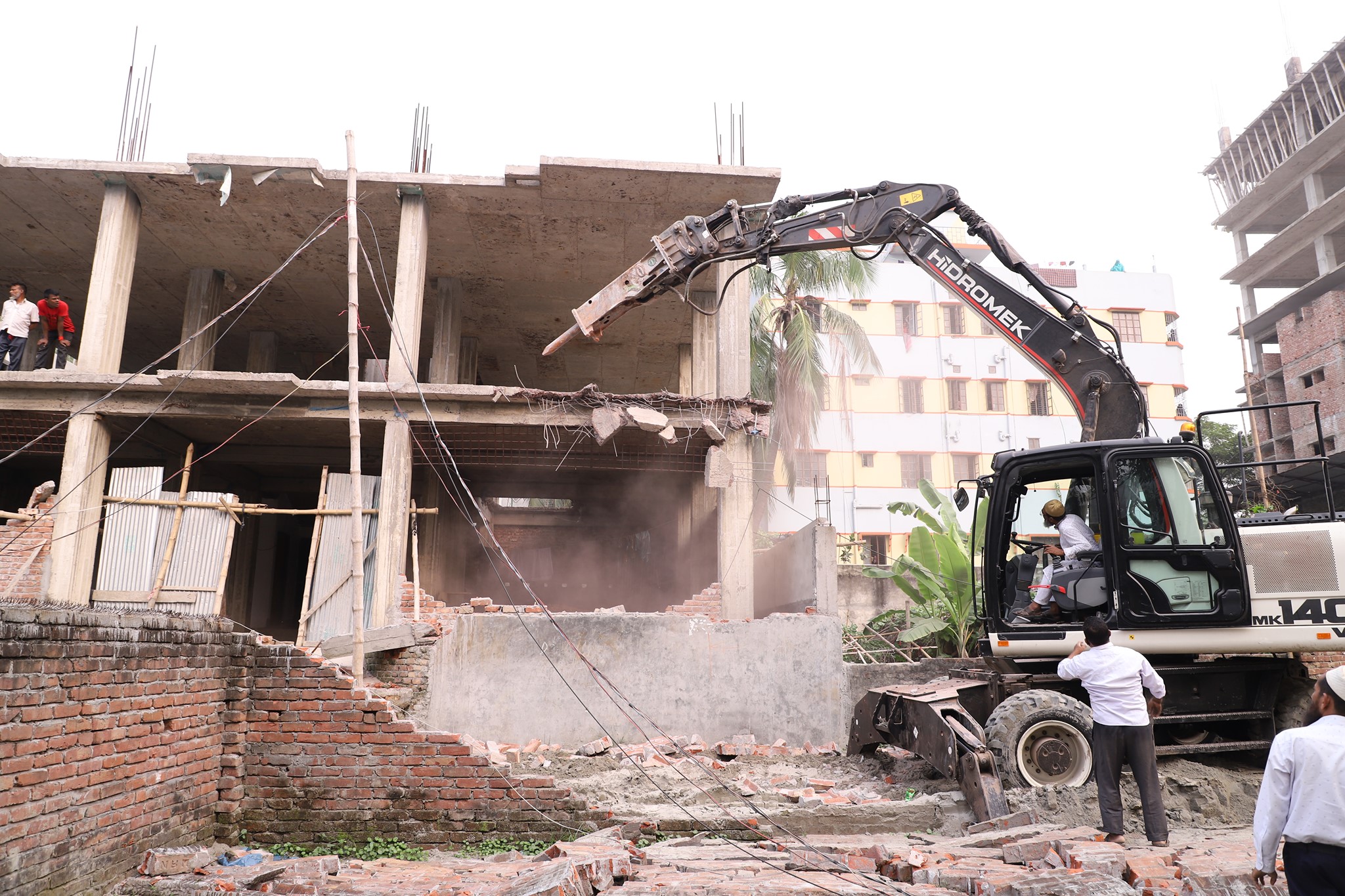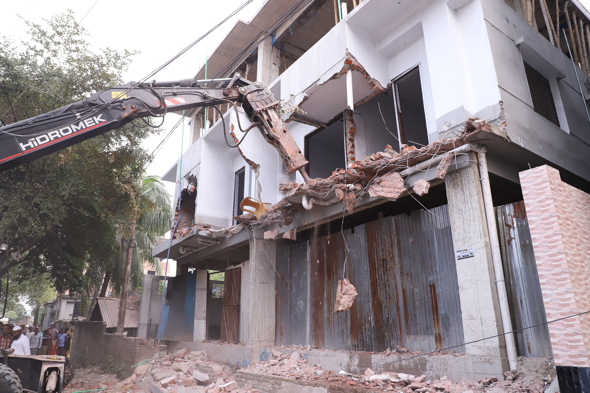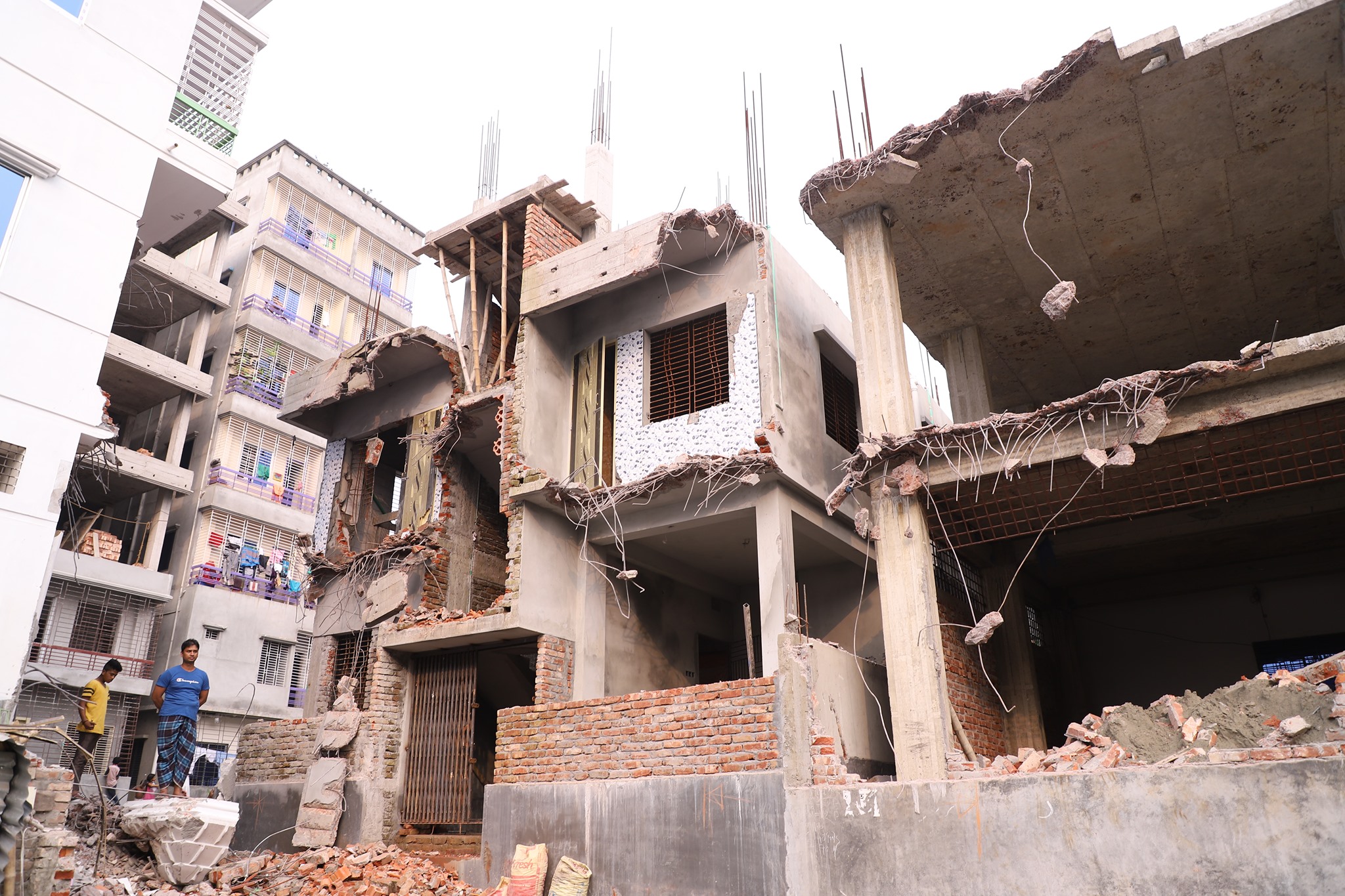 রাজউকের অনুমোদিত নকশা মোতাবেক ভবন নির্মাণ না করায় সিদ্ধিরগঞ্জের সানারপাড় এলাকায় ভ্রাম্যমান আদালত ০৬ টি নির্মাণাধীন ভবনের অবৈধ অংশ অপসারণ করেছে।